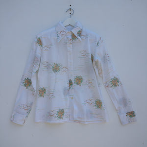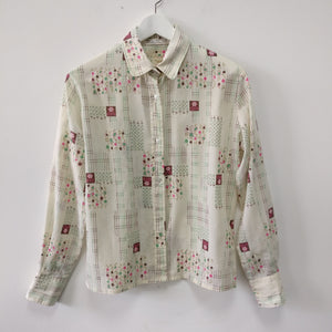 1960s vintage flower patterned long sleeve blouse M