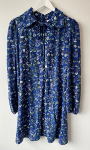Pretty blue flower short vintage 1960s bell sleeve dress from St Michael Courtelle Medium M