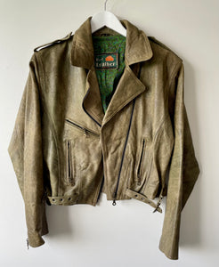 Soft leather olive green vintage 1980s or 90s biker style jacket M
