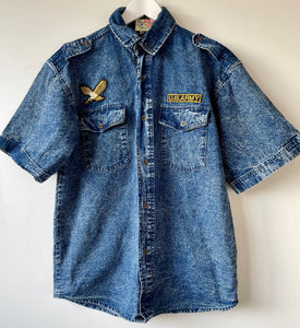 Short sleeve denim acid wash vintage 1980s made in USA unisex shirt M