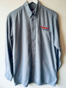 Grey blue Dickies tippers long sleeve work shirt with button collar L