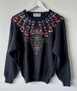 Black beaded and sequin vintage 1980s ladies knitted jumper by Western Connection M- Regular price