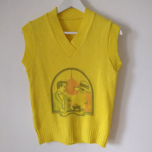 Vintage 1970s yellow tank top with 20s style print S- Regular price