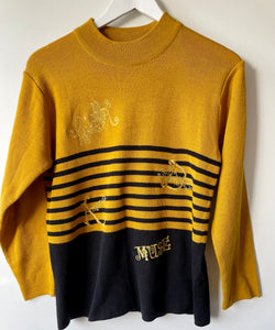 Fab mustard and black vintage 1980s knit jumper with motif M