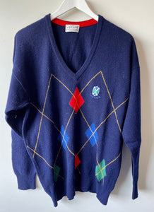 Jaeger Argyle v-neck wool jumper M to L- Regular price