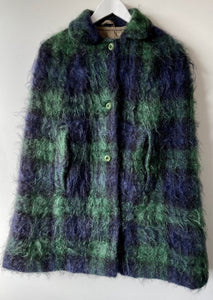 Green and blue check vintage 1960s mohair cape made in GB by Jay Dee Medium M- Regular price