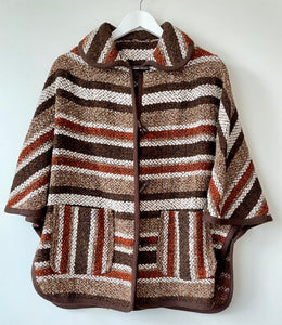Cozy brown striped wool vintage 1960s/1970s short poncho cape by Julius M- Regular price