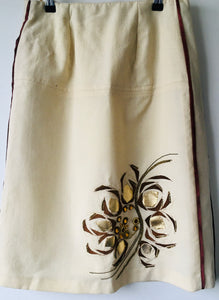 1970s vintage cream knee length skirt with appliqué M- Regular price