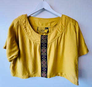 Mustard yellow cropped 1980s vintage shirt sleeve top M/L- Regular price